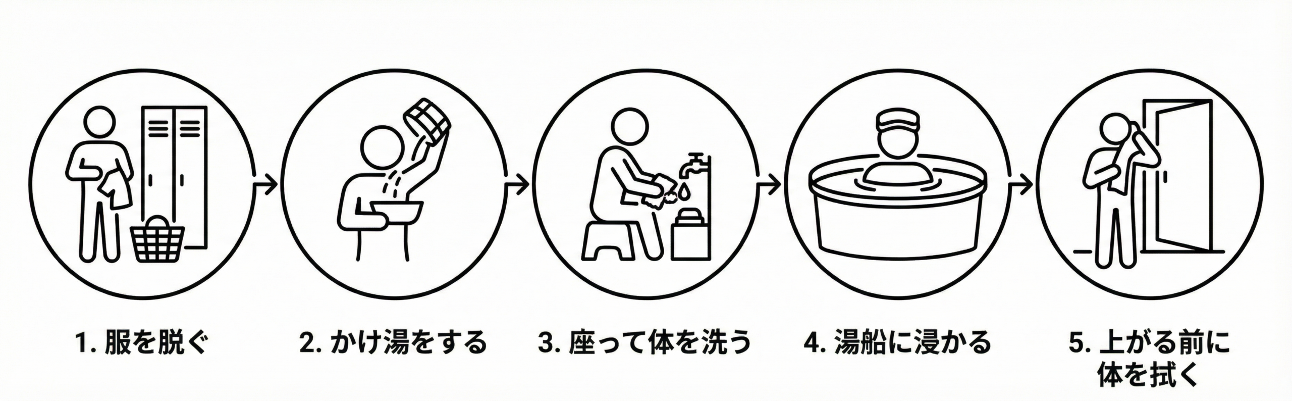 この記事では、入浴前から入浴後までの流れと、知っておくべきエチケットをステップバイステップで解説します。